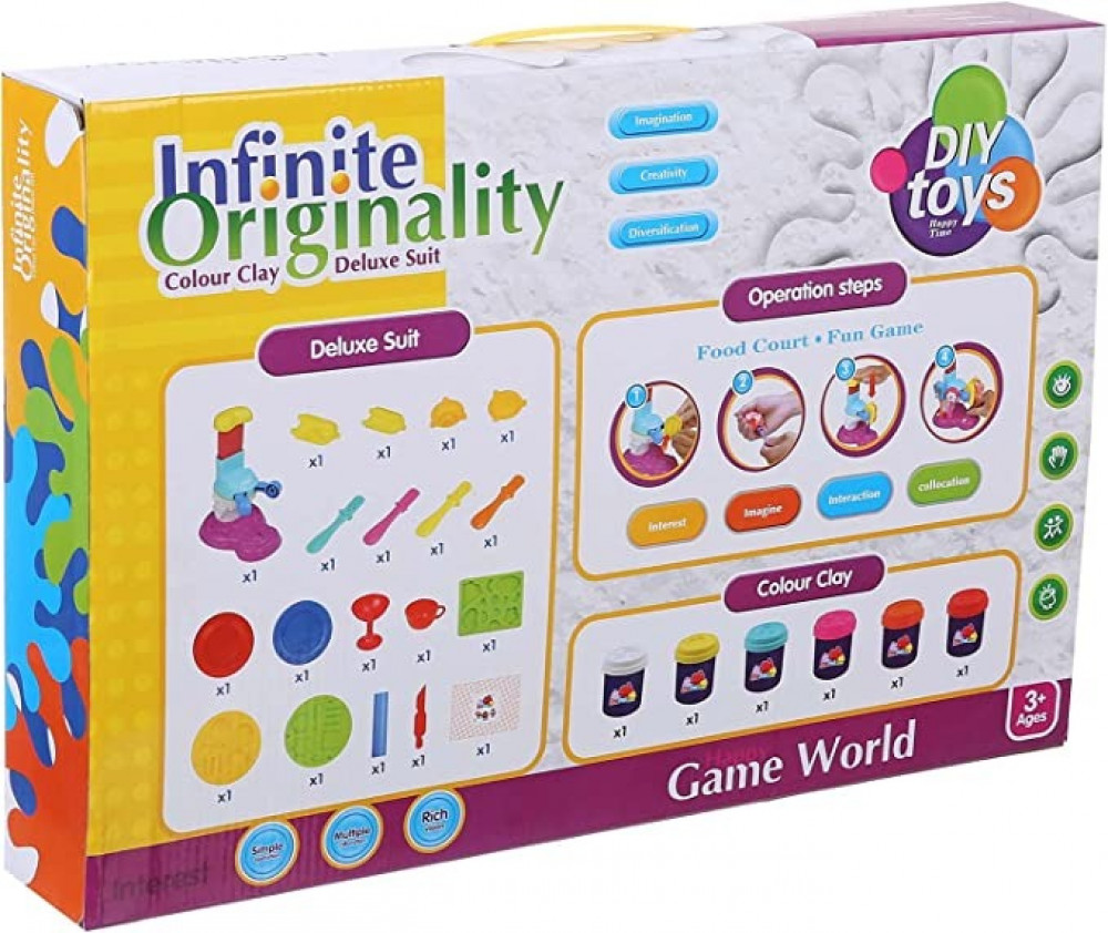 - آلة لصنع الآيس كريم على شكل لعبة تحتوي على 6 دلاء من العجين بألوان مختلفة وجميعها مصنوعة من مواد خام من الدرجة الأولى وآمنة ذات ألوان غير كيميائية. توضع جميع المعاجين في أكواب بلاستيكية ذات أغطية. يمكن عمل لون جديد عن طريق خلط المعاجين معًا وفقًا للإرشادات الموجودة على العلبة.