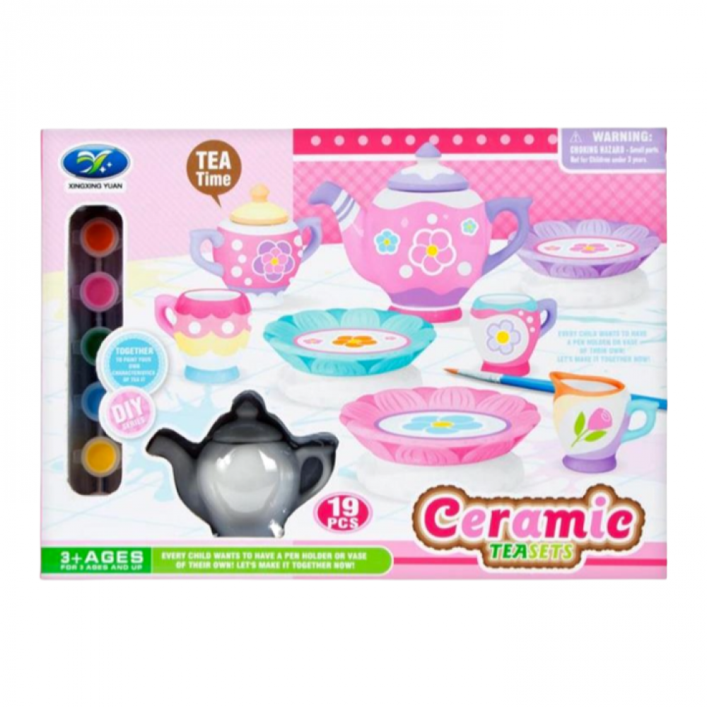 طقم شاي مصنوع من السيراميك للتلوين يمنح طفلك وقتاً مريحاً ومليئاً بالمتعة مصنوع من مواد عالية الجودة وسهل الاستخدم