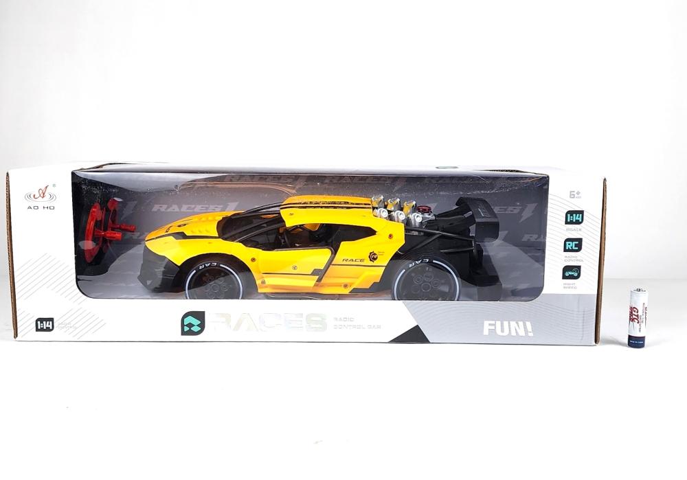 سيارة تعمل بالتحكم عن بعد، تعمل بالراديو. يتم تشغيل الجهاز بواسطة بطارية قابلة للشحن