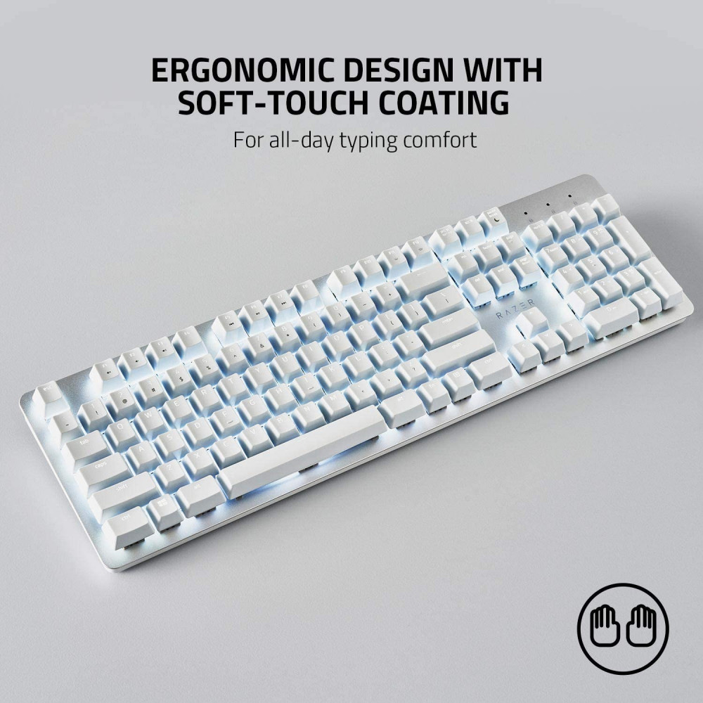 استمتع بالكتابة باللمس الأكثر استجابة باستخدام المفاتيح التي تتطلب قوة أقل للضغط عليها ولها ملف تعريف منخفض الصوت مقارنة بلوحات المفاتيح الميكانيكية الأخرى لتقليل إزعاج الآخرين عند العمل.