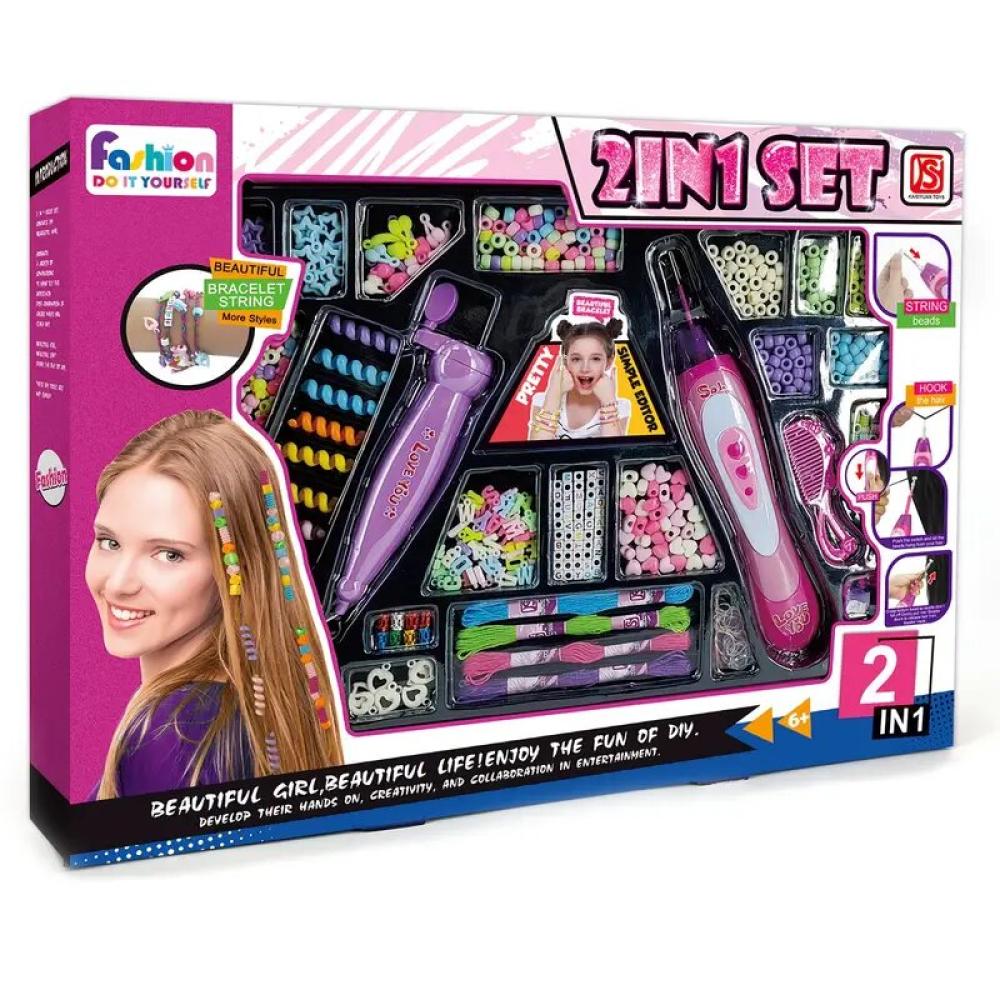 كل فتاة تريد أن تكون الأجمل والفريدة من نوعها مجموعة صنع الضفائر والأساور 2 في 1 للأميرات الصغيرات.24 قطعة من مجموعة ألعاب صالون التجميل للأطفال،