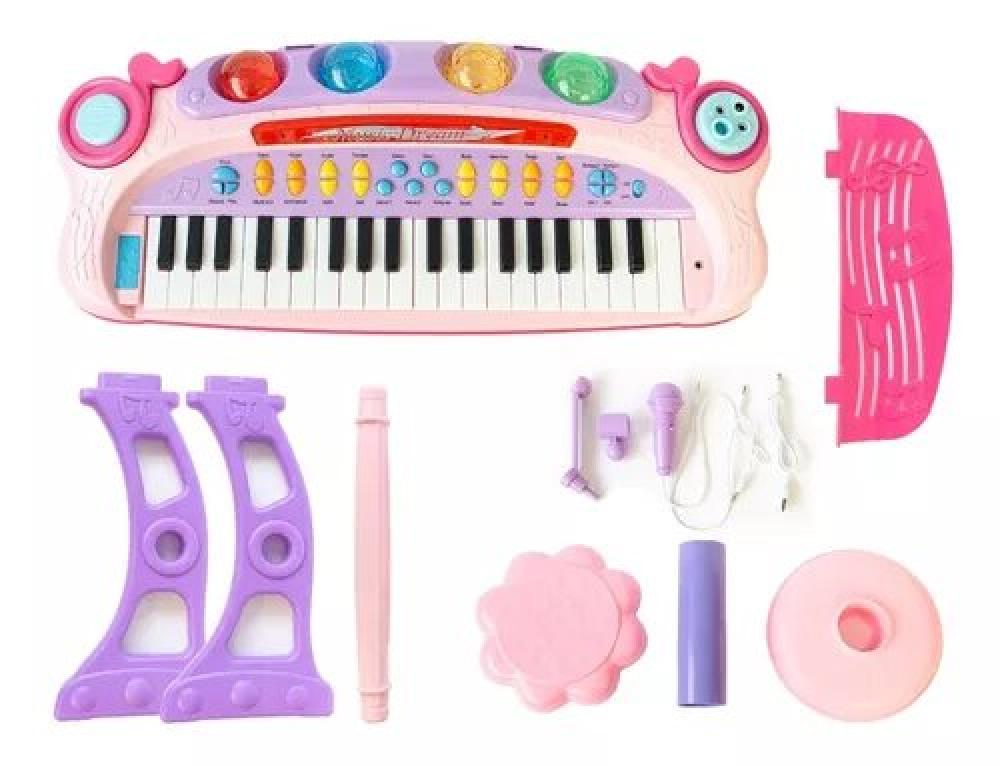 يعد هذا البيانو الرائع طريقة رائعة لتعريف أطفالك بعالم الموسيقى. من خلال مجموعة كبيرة ومتنوعة من الأصوات والإيقاعات والضوضاء، سيتم تدريب قدرات طفلك السمعية والموسيقية على نطاق واسع. اللون الوردي ومظهره التقليدي يجعل لوحة المفاتيح تبدو وكأنها حقيقية تمامًا.