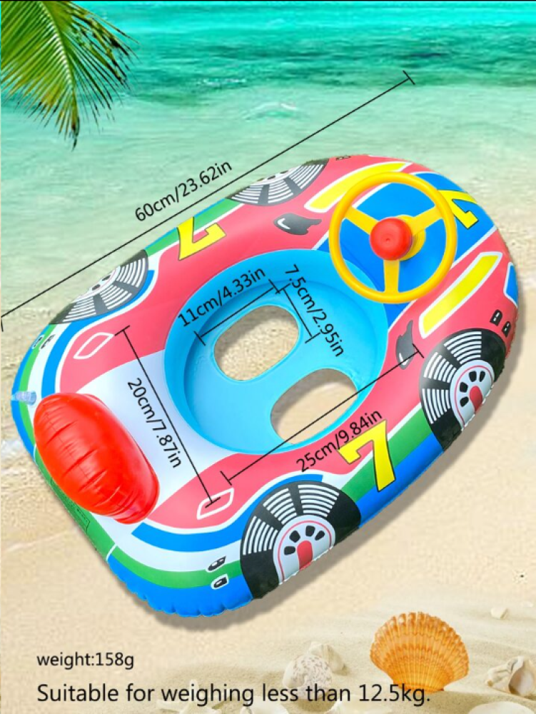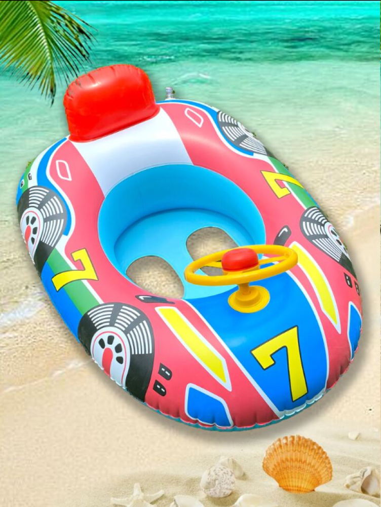 عوامة سباحة للاطفال قابلة للنفخ بتصميم كارتون مصنوعة من بلاستيك بي في سي، مقعد دائري مع منفاخ ومقبض للاطفال بعمر 6 اشهر الى 3 سنوات