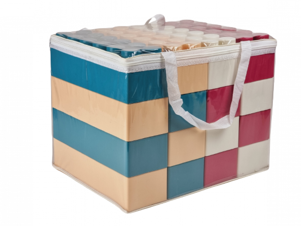 لعبة رائعة للصغار مع مكعبات التركيب كبيرة الحجم ذات الألوان الجميلة، اللعبة رائعة لتعريف الأطفال على الأشكال والألوان والتصاميم والتركيب والبناء، تتضمن المجموعة 16 مكعب ملون، الألعاب مصنوعة من بلاستيك متين عالي الجودة آمنة للعب الأطفال. شكل وحجم اللعبة رائع لأيدي الأطفال الصغيرة، تحتوي على شنطة بخامة متينة لحفظ المكعبات ولتعليم الطفل إعادة وترتيب الألعاب لمكانها الصحيح،