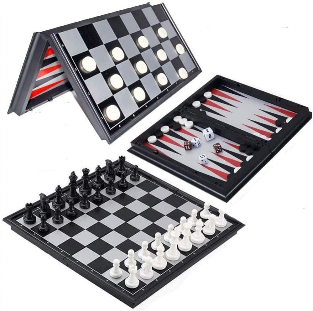 - لوحة 3 في 1 تتضمن مجموعة الشطرنج المغناطيسية، لعبة الداما و لعبة الطاولة