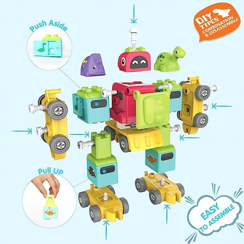 - ألعاب روبوت قطار 5 في 1: ألعاب التعلم والتعليم لدينا تحظى بالثناء لكونها ممتعة وجذابة. يضم ما مجموعه 77 لبنة بناء ، مع وضعين للتجميع يمكن تجميعهما في 5 سيارات منفصلة وضمهما معًا في النهاية لتشكيل قطار تحت عنوان الديناصورات ، أو تحويله إلى روبوت. قم بشرائها الآن ودع الطفل يترك هواتفه المحمولة وأجهزة iPad. طريقة مثالية لقضاء بعض الوقت الجيد بين الوالدين والطفل!