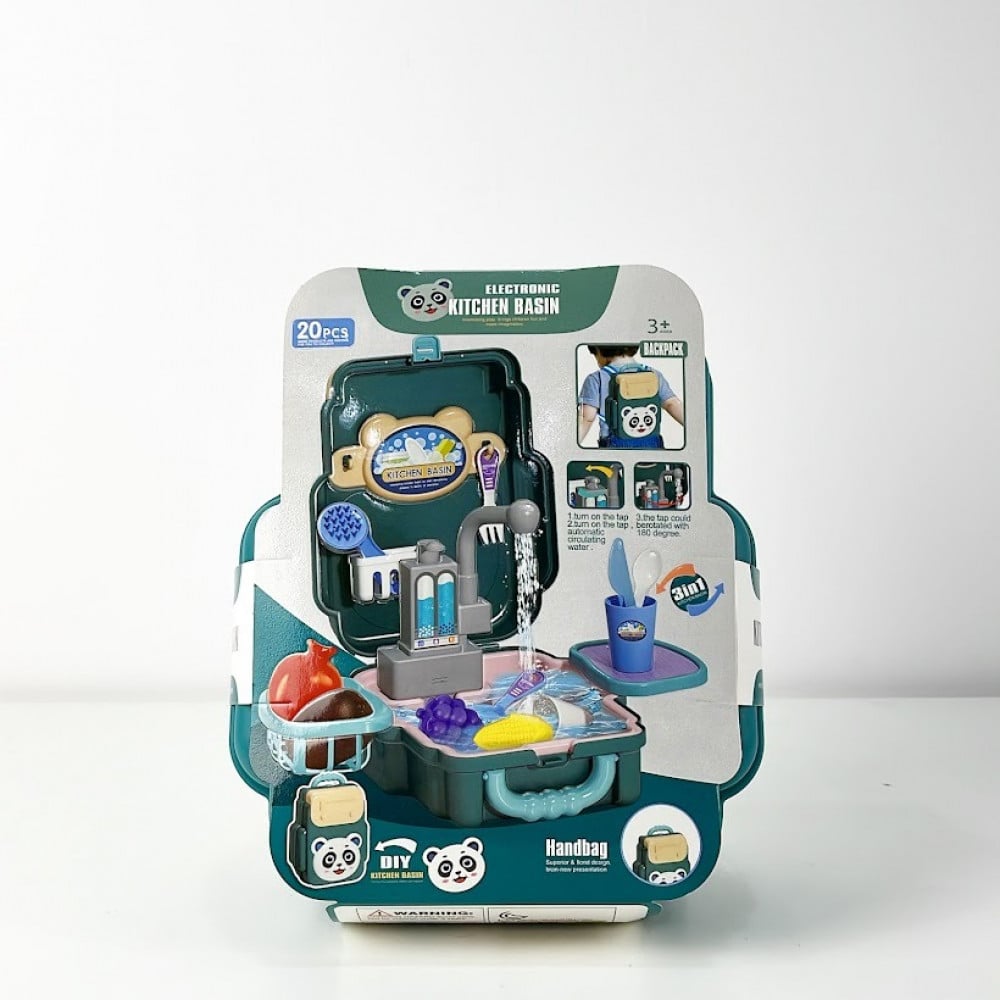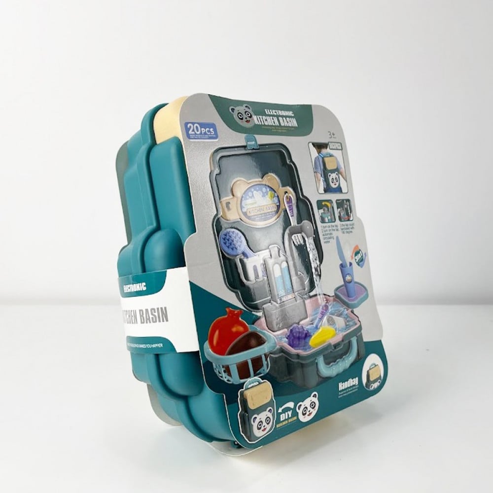 حقيبة غسيل ادوات المطبخ هي لعبة تساعد طفلتك على حب التنظيف و الاهتمام بالمنزل و الاحساس بالمسؤولية باداء المهام المنزلية اليومية