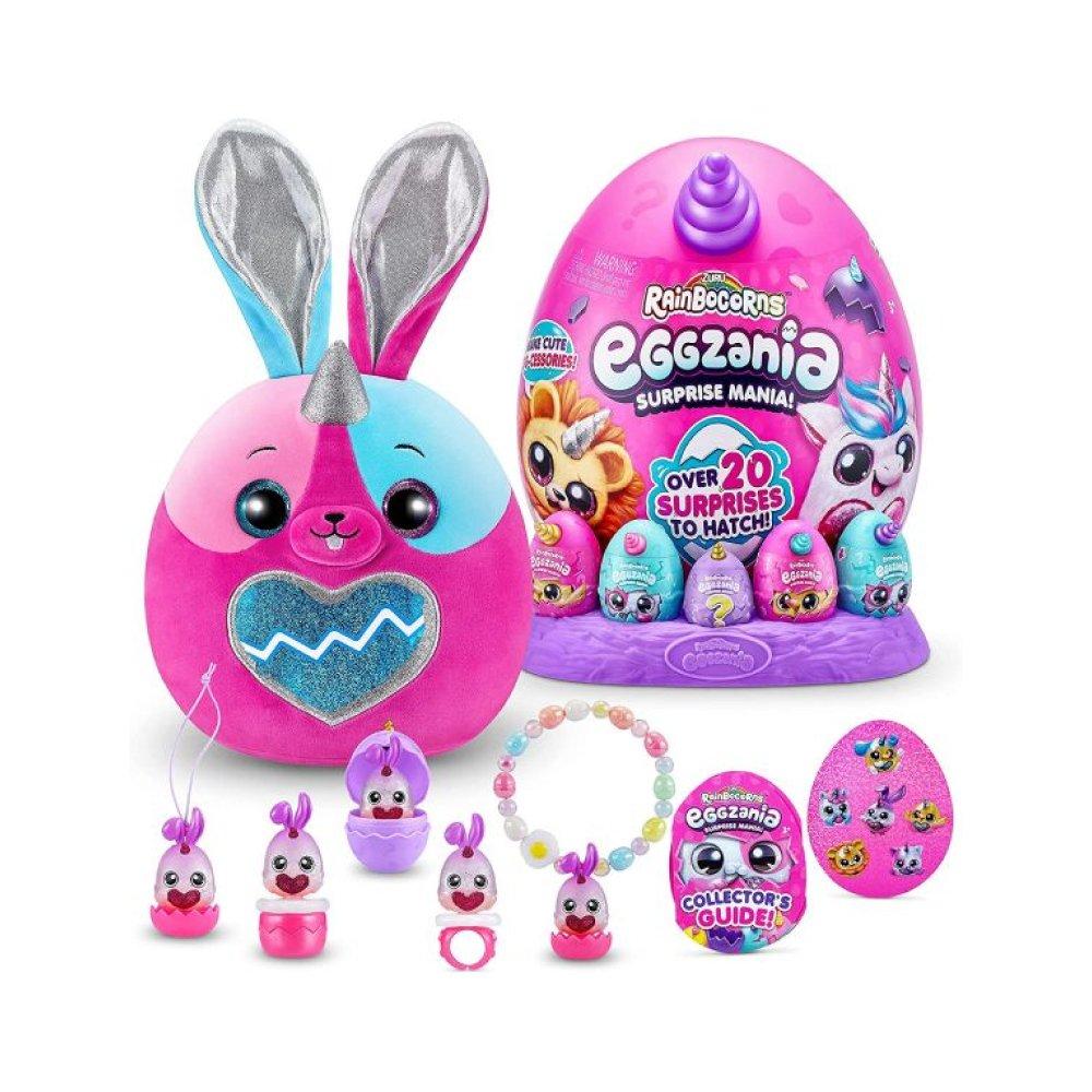 اقتحم لعبة رينبوكرنس إيجزانيا الجديدة! تحتوي هذه البيضة على أكثر من 20 مفاجأة وشخصيات إيجزانيا الجديدة. قم بإزالة البيضة من العش لتفقس قطيفة رينبوكورنس إيجزانيا! هناك 6 حيوانات من إيجزانيا يمكنك جمعها، بما في ذلك روري الأسد، وفول السوداني الفيل، ودافي فلامينجو. تأتي كل دمية إيجزانيا المحشوة كاملة مع صفار مطابق، و5 بيضات صغيرة، وملصقات، وإكسسوارات يمكن ارتداؤها، ومقلب إيجزانيا الذي سيصيبك بالصدمة (إذا حصلت على صفار البيض) ادخل إلى Rainboville بأناقة مع خاتم وخاتم وسوار يمكنك صنعه بنفسك لتتناسب مع إيجزانيا الخاص بك. تحب رينبوكرنس الناعمة والحريرية العناق وستجعلك تبدو مشمسًا. أي إيجزانيا سوف تفقس؟