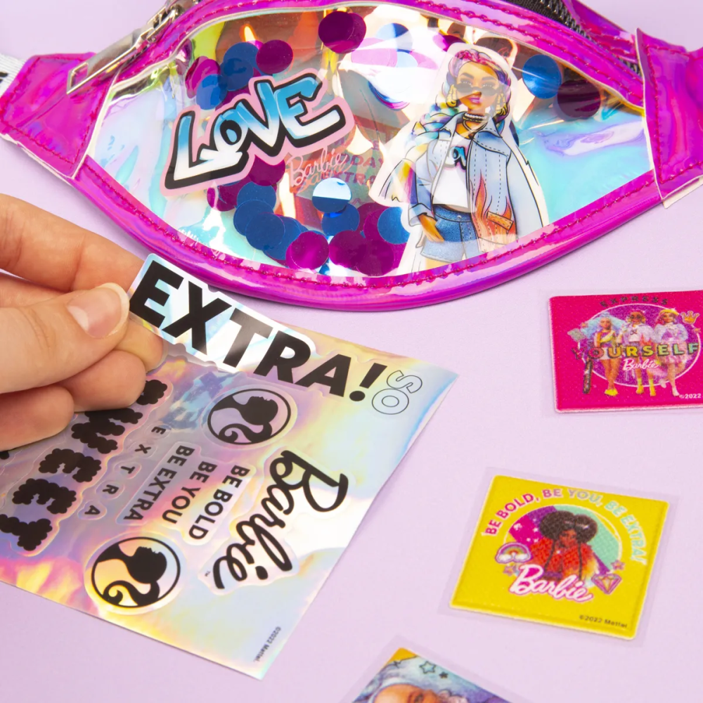 باربي اكسترا مجموعة تصميم حقيبة بوم تعتبر مجموعة باربي إكسترا بوم بتصميم حقيبة إكسسوارًا رائعًا لعشاق الموضة الشباب يتميز بلوحة أمامية قزحية اللون مع سحاب واحد للإغلاق وحزام قابل للتعديل صمم وشكل الحقيبة باستخدام الملصقات المرفقة خذ معك أشياء صغيرة في الحقيبة تتضمن هذه المجموعة حقيبة بوم و 2 رقعة لاصقة وملصق لامع ماذا في الصندوق؟ 1 مجموعة تصميم حقيبة بوم إضافية باربي 1 كيس بوم قزحي الألوان عدد 2 لصقة لاصقة 1 ورقة لاصقة لامعة المواصفات : إبعاد العبوة : 25x14.8x5.7 سم وزن المنتج : 0.15 كيلو غرام نوع المادة : بلاستيك / بوليستر اللون : متعدد الالوان