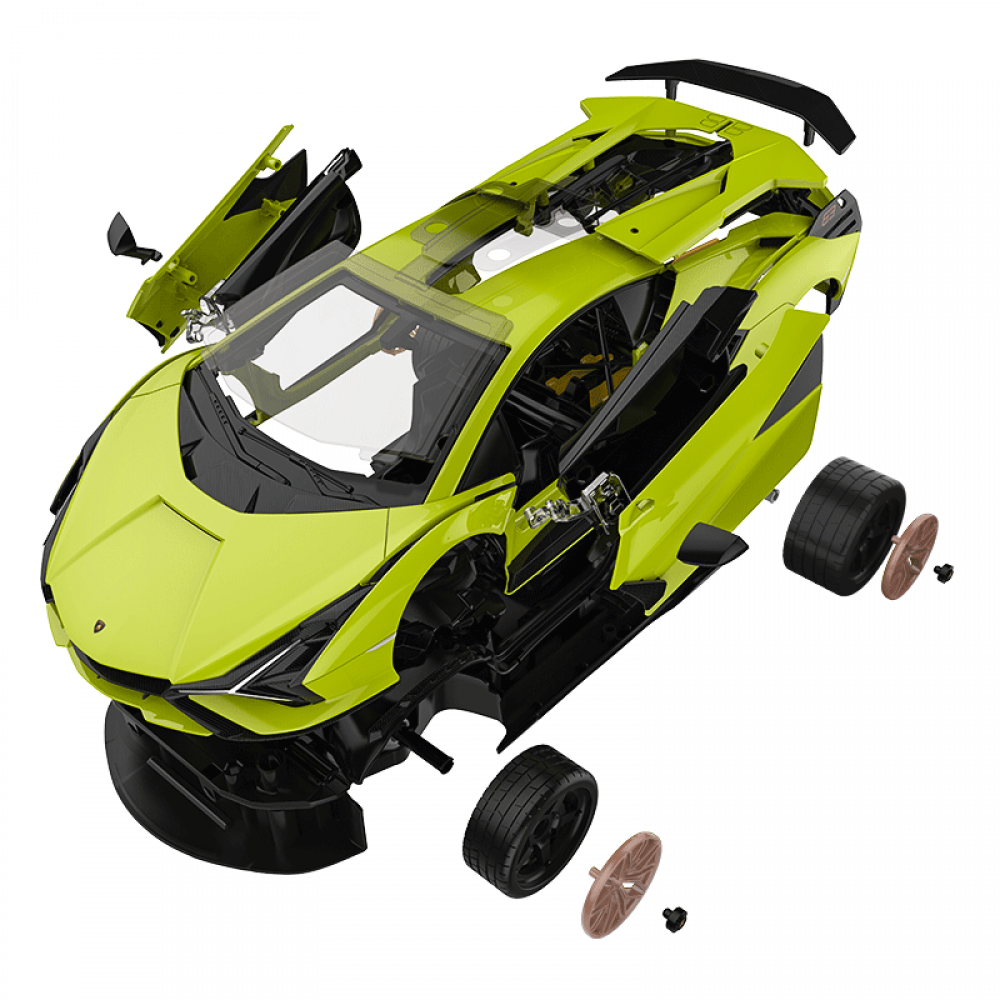 - ذات تفاصيل عالية - باعتبارها نسخة أصلية من لامبورغيني سيان، تتميز سيارة التحكم عن بعد النهائية بتفاصيل داخلية وخارجية بما في ذلك الأبواب المفتوحة والمصابيح الأمامية العاملة والآلية التفاضلية.