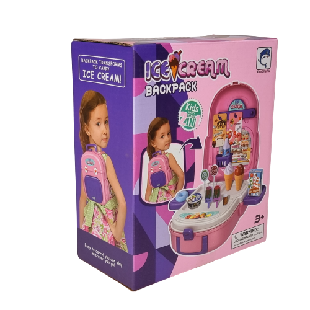 حقيبة تحتوي على العديد من نكهات الايسكريم المختلفة مع معدات تحضيرها.