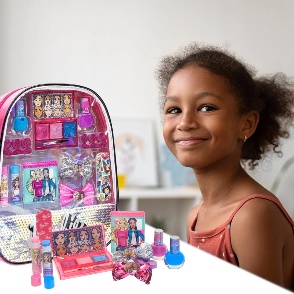 تم تعبئتها بشكل مريح في حقيبة ظهر أنيقة، مجموعة التجميل هذه مثالية للتألق أثناء التنقل. استعدي للتألق مع حقيبة الظهر التجميلية باربي جلام آند جليتز