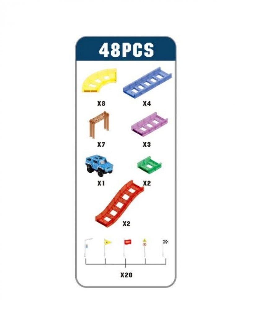 مضمار سباق السيارات يتكون من 47 قطعة , سهل التركيب ف جميع القطع تتصل ببعضها مغناطيسيا , يمكنك تركيبها بسرعة و الاستمتاع بوقت اللعب مع طفلك