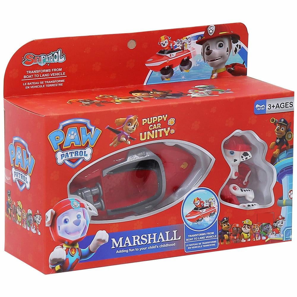 تتكون المجموعة من مجسم جرو ومحول نقل - يتحول القارب إلى سيارة. الشكل له أرجل ورأس متحركتان. مقاس الجرو 5 × 6.5 سم مقاس الماكينة 8 × 15 سم.