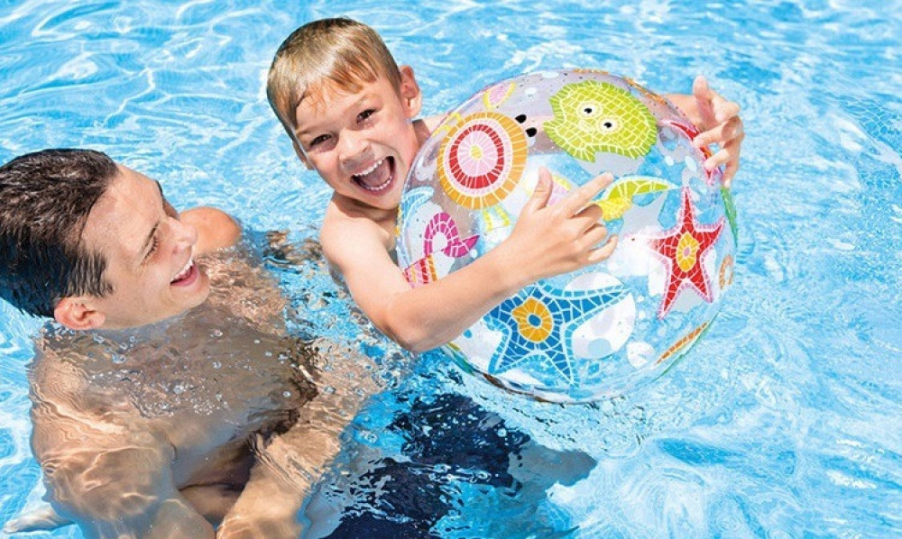 استمتع مع أطفالك على الشواطئ أو الحدائق بكرة INTEX الاستوائية بأشطال محببة وملفته للأطفال.