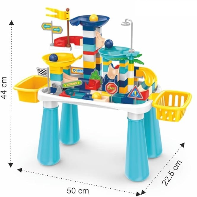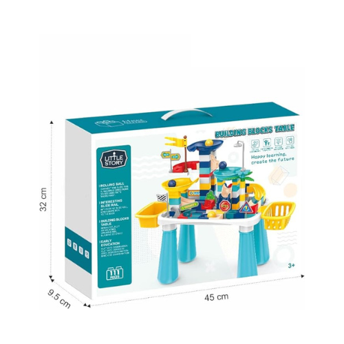 - مكعبات البناء: طاولة مع مساحة بناء ثلاثية الأبعاد مبتكرة مع حاجز منزلق مثير للاهتمام لجلب المزيد من المرح للطفل.