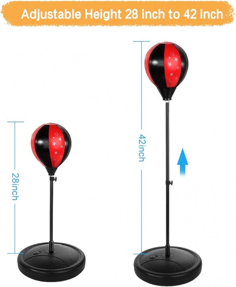 - تتضمن مجموعة الملاكمة للأطفال هذه 1 وسادة ملاكمة مع قاعدة وحامل قابل للتعديل بارتفاع يصل إلى 43 بوصة، و1 مضخة هواء إضافية وزوج واحد من القفازات الإضافية. يمكن وزن القاعدة عن طريق ملئها بالرمل أو الماء (غير متضمنة) من أجل الثبات.